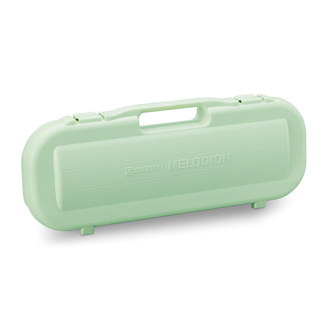 吹く息がそのまま音になるように演奏できるメロディオン。色はピンクとグリーンの2色展開です。付属のハードケースは卓奏唄口の収納が簡単にできる設計。さらにケースの横にも名前を記入できるのでロッカー収納時に自分のメロディオンをすぐに探せて便利です。またケースは開くと譜面立てとしてお使いいただけます。